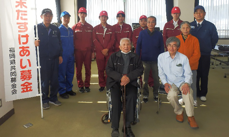 筑紫台高等学校 工業技術科 自動車研究部員の6名及び先生2名の方々により、車いす29台の点検、補修を行いました。